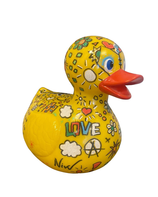 Hand-Painted and Lacquered Rubber Duck - Signed, 25cm High - Eye-Catching Interior Accent
